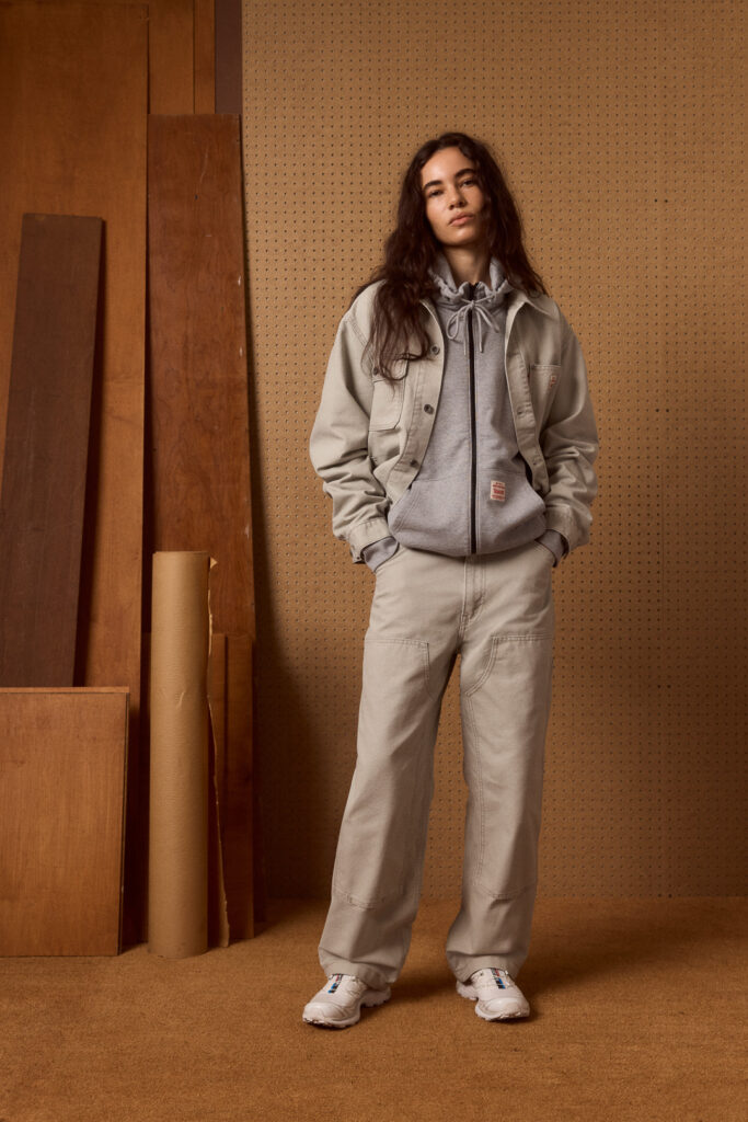 El workwear sale del taller y llega a la calle con un enfoque más estético. Jeans con refuerzos, telas resistentes y cortes rectos crean looks con carácter. El 568™ Loose Straight Double Knee es ideal para mezclar con prendas suaves: un suéter de punto grueso, una bufanda ligera o un abrigo de lana. El balance lo es todo.