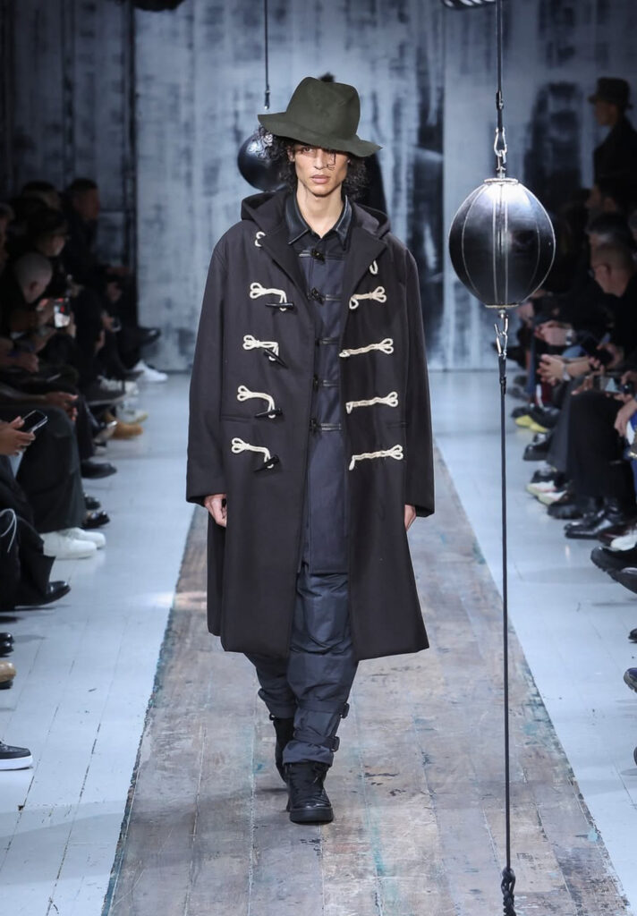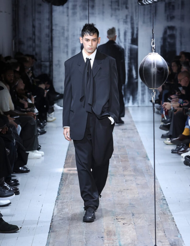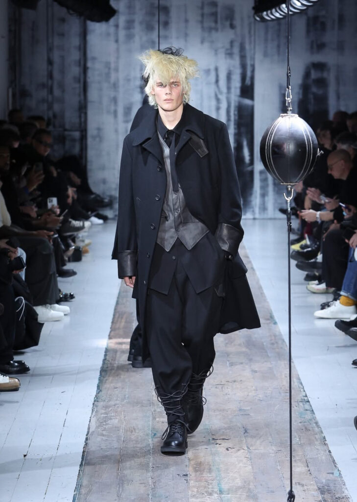 En un momento donde la moda invita a vestirse como una “armadura moderna”, la propuesta de Yohji Yamamoto se sintió como un abrazo cálido. El uso del negro, las capas y las texturas envolventes construyen una narrativa que protege y acompaña al cuerpo.