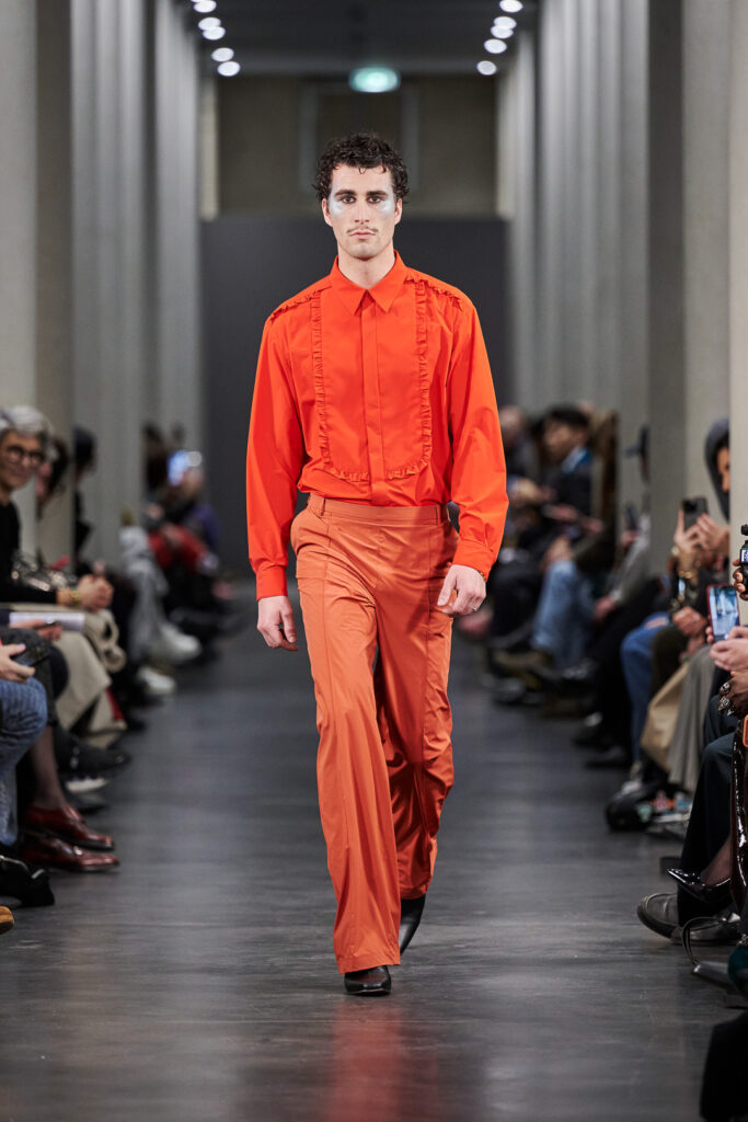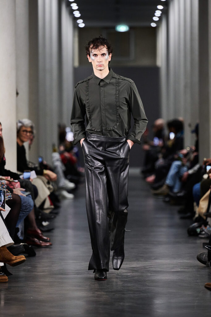 Una sofisticación narrativa que se traduce en prendas que parecen sacadas del archivo de un viajero elegante. Las siluetas combinan cortes suaves con volúmenes bien pensados, creando un juego de proporciones poco convencionales. Valette apuesta por una reflexión silenciosa y una elegancia contenida.